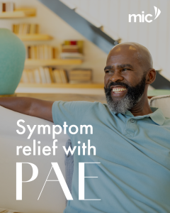 An enlarged prostate can cause distressing urinary symptoms, including frequent night-time voids, weak urine flow, and urgency. Prostate Artery Embolisation (PAE) is a minimally invasive procedure that reduces blood flow to the prostate, causing it to shrink and relieving pressure on the urethra. This targeted approach improves urine flow, reduces urgency, and minimises night-time interruptions, while carrying a lower risk of side effects compared to traditional surgery. Patients often experience faster recovery and a swift return to daily activities. To learn more about PAE, visit our website.